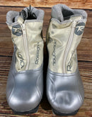 Boots are the most obviously distinctive family of Nordic ski boots. They have a 75mm wide "duck bill" at the front of the boot, with three holes on the bottom of the bill that line up with the pins on their appropriate binding.