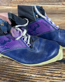 Boots are the most obviously distinctive family of Nordic ski boots. They have a 75mm wide "duck bill" at the front of the boot, with three holes on the bottom of the bill that line up with the pins on their appropriate binding.