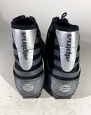 Boots are the most obviously distinctive family of nordic ski boots. They have a 75mm wide "duck bill" at the front of the boot, with three holes on the bottom of the bill that line up with the pins on their appropriate binding.