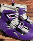 Boots are the most obviously distinctive family of nordic ski boots. They have a 75mm wide "duck bill" at the front of the boot, with three holes on the bottom of the bill that line up with the pins on their appropriate binding.