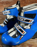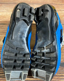 Boots are the most obviously distinctive family of nordic ski boots. They have a 75mm wide "duck bill" at the front of the boot, with three holes on the bottom of the bill that line up with the pins on their appropriate binding.