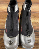 Boots are the most obviously distinctive family of nordic ski boots. They have a 75mm wide "duck bill" at the front of the boot, with three holes on the bottom of the bill that line up with the pins on their appropriate binding.