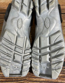 Boots are the most obviously distinctive family of nordic ski boots. They have a 75mm wide "duck bill" at the front of the boot, with three holes on the bottom of the bill that line up with the pins on their appropriate binding.
