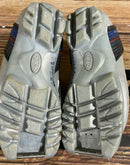 Boots are the most obviously distinctive family of nordic ski boots. They have a 75mm wide "duck bill" at the front of the boot, with three holes on the bottom of the bill that line up with the pins on their appropriate binding.