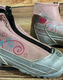 Boots are the most obviously distinctive family of nordic ski boots. They have a 75mm wide "duck bill" at the front of the boot, with three holes on the bottom of the bill that line up with the pins on their appropriate binding.