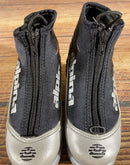 Boots are the most obviously distinctive family of nordic ski boots. They have a 75mm wide "duck bill" at the front of the boot, with three holes on the bottom of the bill that line up with the pins on their appropriate binding.