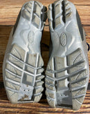 Boots are the most obviously distinctive family of nordic ski boots. They have a 75mm wide "duck bill" at the front of the boot, with three holes on the bottom of the bill that line up with the pins on their appropriate binding.