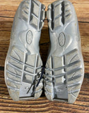 Boots are the most obviously distinctive family of nordic ski boots. They have a 75mm wide "duck bill" at the front of the boot, with three holes on the bottom of the bill that line up with the pins on their appropriate binding.