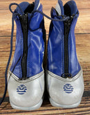 Boots are the most obviously distinctive family of nordic ski boots. They have a 75mm wide "duck bill" at the front of the boot, with three holes on the bottom of the bill that line up with the pins on their appropriate binding.