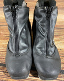 Boots are the most obviously distinctive family of nordic ski boots. They have a 75mm wide "duck bill" at the front of the boot, with three holes on the bottom of the bill that line up with the pins on their appropriate binding.