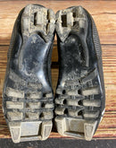 Boots are the most obviously distinctive family of nordic ski boots. They have a 75mm wide "duck bill" at the front of the boot, with three holes on the bottom of the bill that line up with the pins on their appropriate binding.