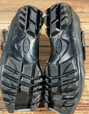 Boots are the most obviously distinctive family of nordic ski boots. They have a 75mm wide "duck bill" at the front of the boot, with three holes on the bottom of the bill that line up with the pins on their appropriate binding.