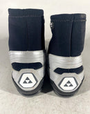 Boots are the most obviously distinctive family of nordic ski boots. They have a 75mm wide "duck bill" at the front of the boot, with three holes on the bottom of the bill that line up with the pins on their appropriate binding.