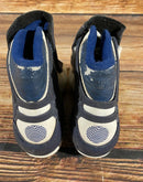 Boots are the most obviously distinctive family of Nordic ski boots. They have a 75mm wide "duck bill" at the front of the boot, with three holes on the bottom of the bill that line up with the pins on their appropriate binding.