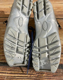 Boots are the most obviously distinctive family of nordic ski boots. They have a 75mm wide "duck bill" at the front of the boot, with three holes on the bottom of the bill that line up with the pins on their appropriate binding.