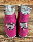 Boots are the most obviously distinctive family of nordic ski boots. They have a 75mm wide "duck bill" at the front of the boot, with three holes on the bottom of the bill that line up with the pins on their appropriate binding.