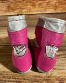 Boots are the most obviously distinctive family of nordic ski boots. They have a 75mm wide "duck bill" at the front of the boot, with three holes on the bottom of the bill that line up with the pins on their appropriate binding.