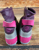 Boots are the most obviously distinctive family of nordic ski boots. They have a 75mm wide "duck bill" at the front of the boot, with three holes on the bottom of the bill that line up with the pins on their appropriate binding.