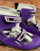 Boots are the most obviously distinctive family of nordic ski boots. They have a 75mm wide "duck bill" at the front of the boot, with three holes on the bottom of the bill that line up with the pins on their appropriate binding.