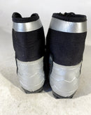 Boots are the most obviously distinctive family of nordic ski boots. They have a 75mm wide "duck bill" at the front of the boot, with three holes on the bottom of the bill that line up with the pins on their appropriate binding.