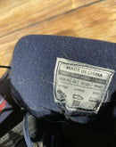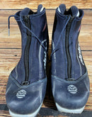 Boots are the most obviously distinctive family of Nordic ski boots. They have a 75mm wide "duck bill" at the front of the boot, with three holes on the bottom of the bill that line up with the pins on their appropriate binding.