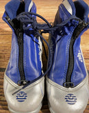 Boots are the most obviously distinctive family of nordic ski boots. They have a 75mm wide "duck bill" at the front of the boot, with three holes on the bottom of the bill that line up with the pins on their appropriate binding.