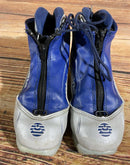 Boots are the most obviously distinctive family of nordic ski boots. They have a 75mm wide "duck bill" at the front of the boot, with three holes on the bottom of the bill that line up with the pins on their appropriate binding.