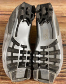 Boots are the most obviously distinctive family of nordic ski boots. They have a 75mm wide "duck bill" at the front of the boot, with three holes on the bottom of the bill that line up with the pins on their appropriate binding.