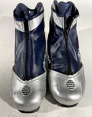 Boots are the most obviously distinctive family of nordic ski boots. They have a 75mm wide "duck bill" at the front of the boot, with three holes on the bottom of the bill that line up with the pins on their appropriate binding.