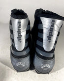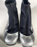Boots are the most obviously distinctive family of nordic ski boots. They have a 75mm wide "duck bill" at the front of the boot, with three holes on the bottom of the bill that line up with the pins on their appropriate binding.