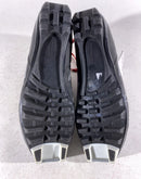 Boots are the most obviously distinctive family of nordic ski boots. They have a 75mm wide "duck bill" at the front of the boot, with three holes on the bottom of the bill that line up with the pins on their appropriate binding.