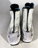 Boots are the most obviously distinctive family of nordic ski boots. They have a 75mm wide "duck bill" at the front of the boot, with three holes on the bottom of the bill that line up with the pins on their appropriate binding.