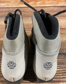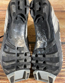 Boots are the most obviously distinctive family of nordic ski boots. They have a 75mm wide "duck bill" at the front of the boot, with three holes on the bottom of the bill that line up with the pins on their appropriate binding.