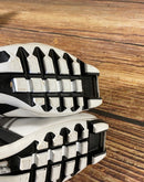 Boots are the most obviously distinctive family of nordic ski boots. They have a 75mm wide "duck bill" at the front of the boot, with three holes on the bottom of the bill that line up with the pins on their appropriate binding.