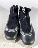 Boots are the most obviously distinctive family of nordic ski boots. They have a 75mm wide "duck bill" at the front of the boot, with three holes on the bottom of the bill that line up with the pins on their appropriate binding.