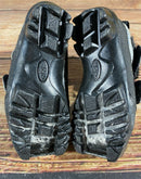Boots are the most obviously distinctive family of nordic ski boots. They have a 75mm wide "duck bill" at the front of the boot, with three holes on the bottom of the bill that line up with the pins on their appropriate binding.