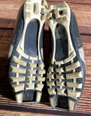 Boots are the most obviously distinctive family of nordic ski boots. They have a 75mm wide "duck bill" at the front of the boot, with three holes on the bottom of the bill that line up with the pins on their appropriate binding.