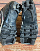 Boots are the most obviously distinctive family of nordic ski boots. They have a 75mm wide "duck bill" at the front of the boot, with three holes on the bottom of the bill that line up with the pins on their appropriate binding.