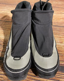 Boots are the most obviously distinctive family of nordic ski boots. They have a 75mm wide "duck bill" at the front of the boot, with three holes on the bottom of the bill that line up with the pins on their appropriate binding.