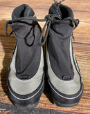 Boots are the most obviously distinctive family of nordic ski boots. They have a 75mm wide "duck bill" at the front of the boot, with three holes on the bottom of the bill that line up with the pins on their appropriate binding.
