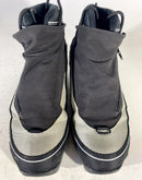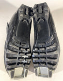 Boots are the most obviously distinctive family of nordic ski boots. They have a 75mm wide "duck bill" at the front of the boot, with three holes on the bottom of the bill that line up with the pins on their appropriate binding.