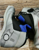 Boots are the most obviously distinctive family of nordic ski boots. They have a 75mm wide "duck bill" at the front of the boot, with three holes on the bottom of the bill that line up with the pins on their appropriate binding.
