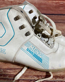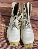 Boots are the most obviously distinctive family of nordic ski boots. They have a 75mm wide "duck bill" at the front of the boot, with three holes on the bottom of the bill that line up with the pins on their appropriate binding.