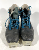 Boots are the most obviously distinctive family of Nordic ski boots. They have a 75mm wide "duck bill" at the front of the boot, with three holes on the bottom of the bill that line up with the pins on their appropriate binding.