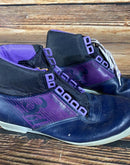 Boots are the most obviously distinctive family of Nordic ski boots. They have a 75mm wide "duck bill" at the front of the boot, with three holes on the bottom of the bill that line up with the pins on their appropriate binding.