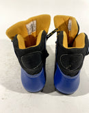 Boots are the most obviously distinctive family of nordic ski boots. They have a 75mm wide "duck bill" at the front of the boot, with three holes on the bottom of the bill that line up with the pins on their appropriate binding.