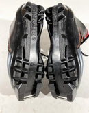 Boots are the most obviously distinctive family of nordic ski boots. They have a 75mm wide "duck bill" at the front of the boot, with three holes on the bottom of the bill that line up with the pins on their appropriate binding.