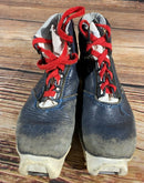 Boots are the most obviously distinctive family of Nordic ski boots. They have a 75mm wide "duck bill" at the front of the boot, with three holes on the bottom of the bill that line up with the pins on their appropriate binding.