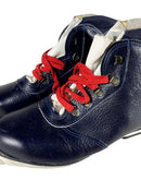 Boots are the most obviously distinctive family of nordic ski boots. They have a 75mm wide "duck bill" at the front of the boot, with three holes on the bottom of the bill that line up with the pins on their appropriate binding.