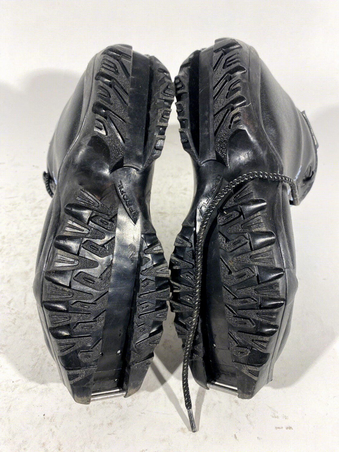 Boots are the most obviously distinctive family of Nordic ski boots. They have a 75mm wide "duck bill" at the front of the boot, with three holes on the bottom of the bill that line up with the pins on their appropriate binding.